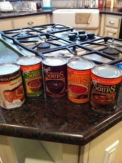Amy's organic black bean, lentil vegetable, low-fat minestrone (I love to add chickpeas to this one for extra proten!), chunky tomato, and Wolfgang Puck organic vegetable tortilla soup.
