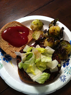 Dinner last night was AWESOME! I made black bean burgers with roasted brussel sprouts (for me & Mike) and chopped cucumbers (for the kiddos)